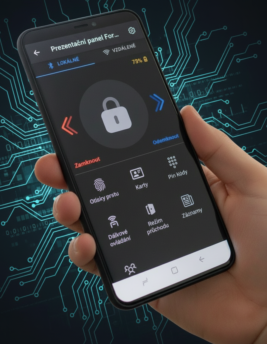 - mimo klasickou správu přístupového zařízení je možné pomocí aplikace v telefonu otevřít dveře
